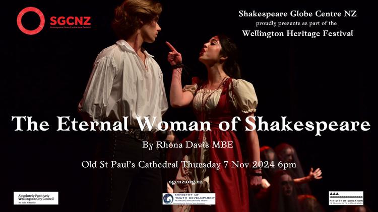 For Wellington Heritage Festival 2024, Shakespeare Globe Centre New Zealand (SGCNZ) and Wellington Shakespeare Society (WSS), plus some professional actors and a surprise Guest Star, are joining forces to present a staged cue-script reading of The Eternal Woman of William Shakespeare.